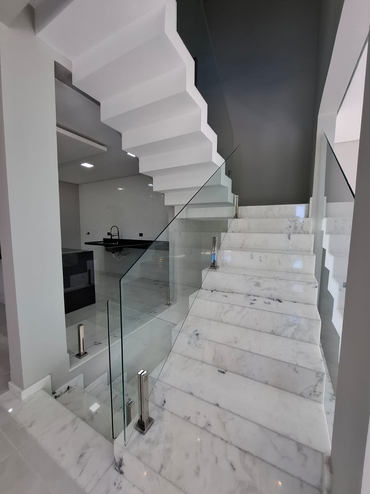 Hall dos quartos, 3 amplas suítes com closet, sendo uma master, com banheira, chuveiros duplos, cubas duplas e varanda com vista para área de preservação do condomínio.