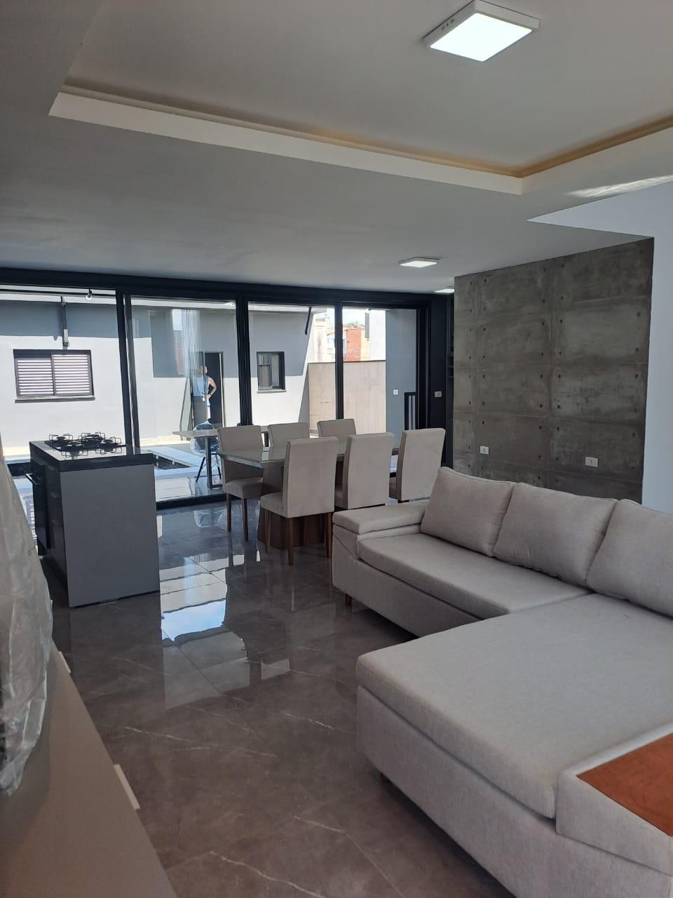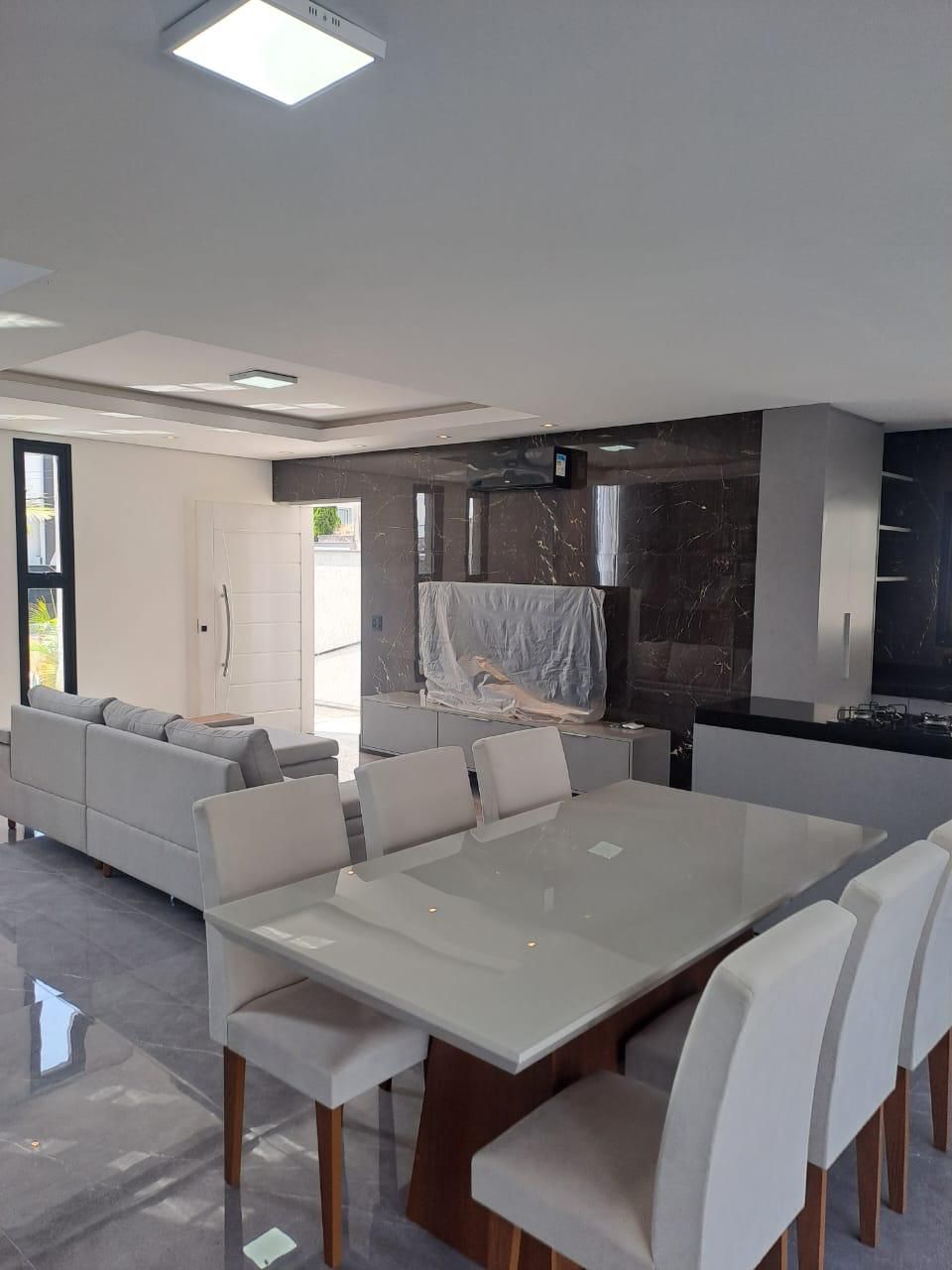 • Sala integrada à cozinha gourmet com pé direito duplo, varanda e área da piscina;